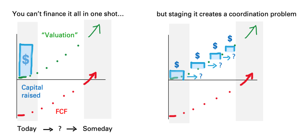 In his article VCs should play bridge, Alex Danco described the Capital Coordination problem in venture capital, created by the staged nature of investments.